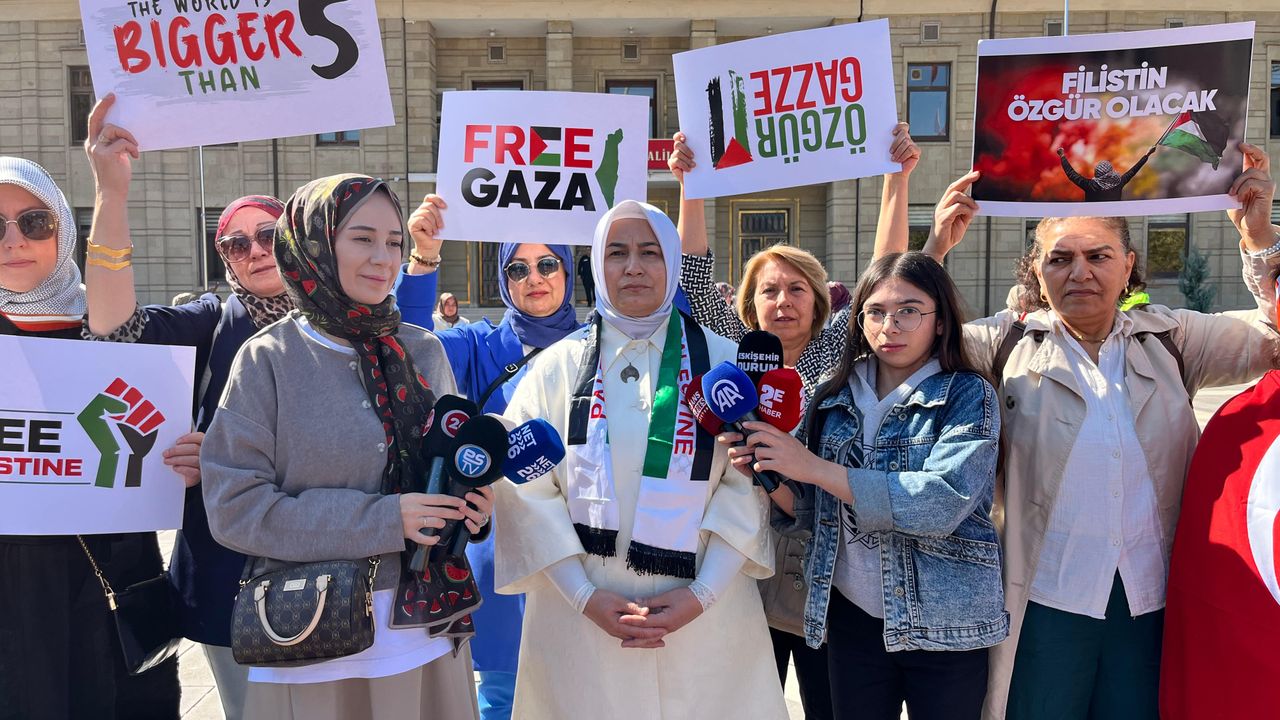 Ertorun, Eskişehir'de toplanan kalabalığa hitap ederek, "Bu acının adı Gazze. Bugün kadınlar olarak Gazze’nin sessiz çığlığına ses olmak için el ele verdiğimizi tüm dünyaya göstermek adına meydanlardayız" dedi.