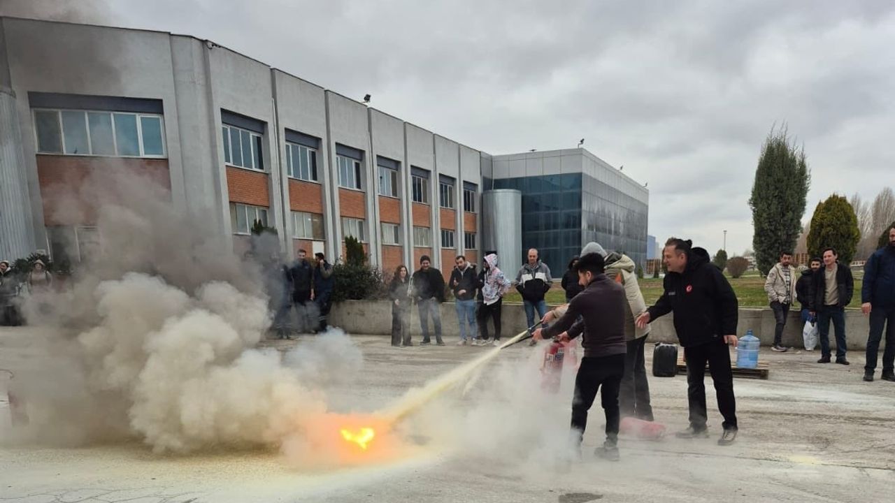 Eskişehir İl Afet ve Acil Durum Müdürlüğü ekiplerince gerçekleştirilen eğitim, fabrika çalışanlarına yönelik olarak 3 grup halinde düzenlendi. Programın ilk bölümünde personele, afet ve yangınlar konusunda teorik bilgilendirme yapıldı.