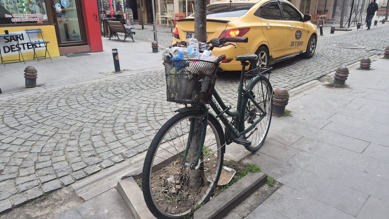 Kentin en hareketli noktalarından biri olan Odunpazarı ilçesi İstiklal Mahallesi'nde, yol kenarındaki bir ağaca kilitlenmiş halde aylardır sahipsiz duran bisiklet, çevre kirliliğinin adeta simgesi haline geldi. Çevredeki çöp kutularına rağmen bisiklet sepetinin atıklarla doldurulması "Bu kadarı da olmaz" dedirtti.