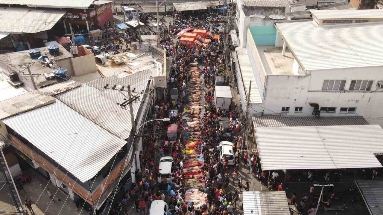 Brezilya’da polisin 28 Ekim tarihinde uyuşturucu çetelerine karşı yürüttüğü kapsamlı operasyondaki can kaybı yükselmeye devam ediyor. Rio de Janeiro polisi, "favela" adlı gecekondu mahallelerine düzenlenen operasyondaki can kaybının 4’ü polis 132’ye yükseldiğini açıkladı. Rio halkı, gece boyunca cesetleri şehirdeki Penha Meydanı’nda toplarken, bazı öfkeli Brezilyalılar ise polisi toplu infaz gerçekleştirmekle suçladı.