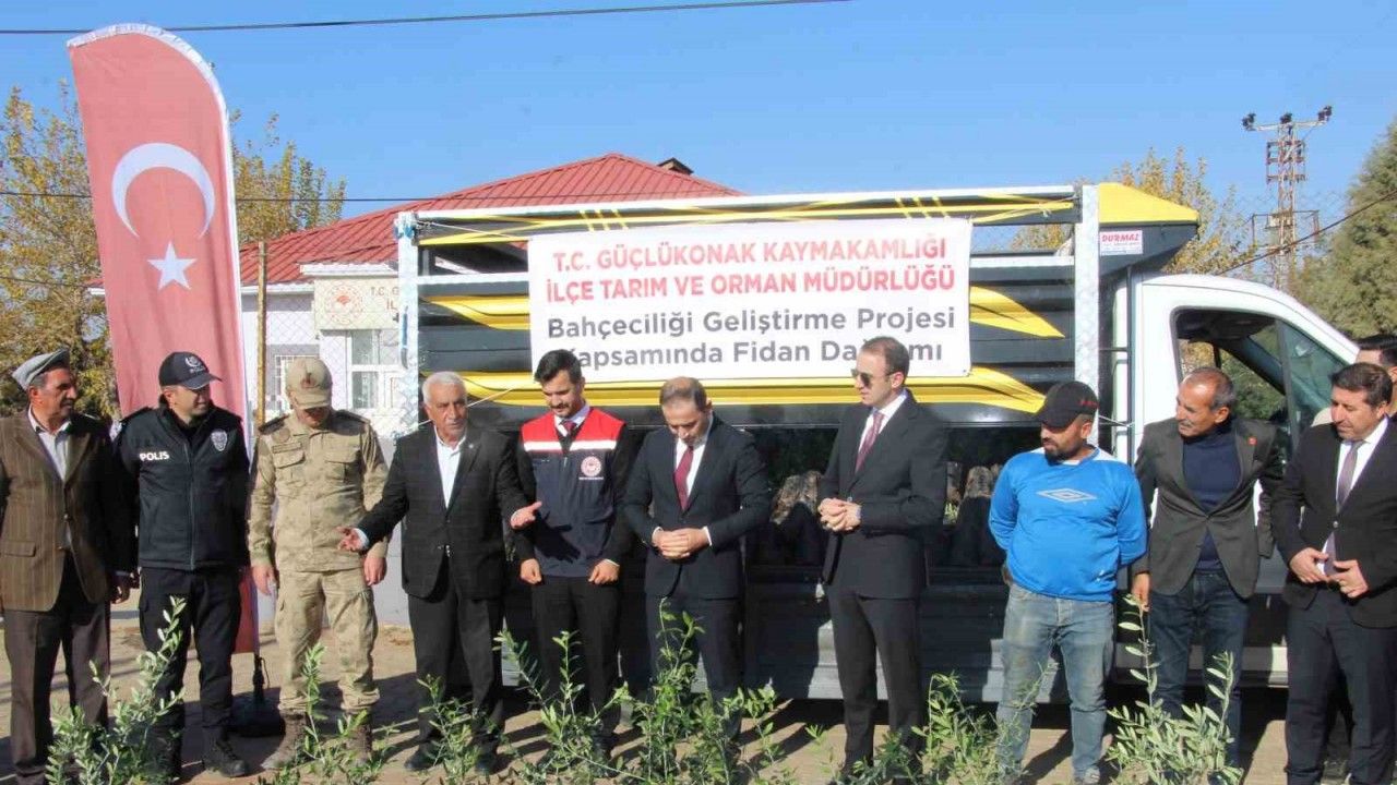 Şırnak Tarım ve Orman Müdürü Oktay Sezgin de "Güçlükonak ilçemizde tarımın bereketi olan zeytin ağacı fidanlarını çiftçilerimize Güçlükonak Kaymakamlığımız, İlçe Tarım ve Orman Müdürlüğün marifetiyle dağıtım programında, töreninde bir araya geldik. Bu gün ev sahipliği yapan kaymakamımızın tarıma vermiş olduğu desteklerden katkılardan dolayı memnuniyetimi dile getirmek isterim. Ülkemizin tarımsal üretimi, tarım ve hayvancılık alanındaki kırsal alanındaki yapacağı bütün faaliyetler milli ekonominin temeli olan tarımla daha da güçlenecektir. Hem tarım güçlenecek hem de milli ekonomisine katkı sağlayacaktır. Zeytin ağacı çok kıymetlidir, fakir toprakların zengin çocuğu olarak ifade edilir. Çok az bir yağmur yasışıyla vereceği meyveler ailelere toplumumuza katkı olur. Bu zeytinler hem sofralık hem de yağlık olarak tüketilir. Bölgemizin iklimi zeytin tarımı için uygundur" şeklinde konuştu.