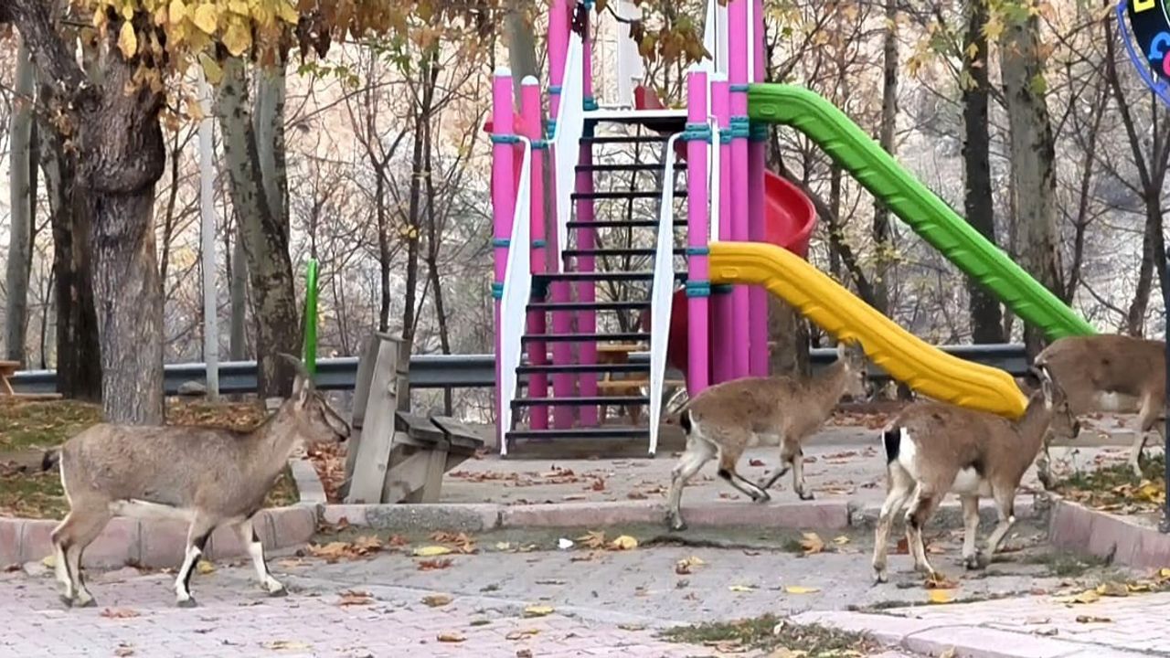 Sabah saatlerinde Elazığ Caddesi üzerindeki, çocukların yoğun olarak kullandığı oyun alanına inen yaban keçileri, çocukların okulda olduğu sakin saatleri fırsat bilerek parkı adeta mesken tuttu. Parkta otlayan ve çevreyi meraklı bakışlarla inceleyen yaban keçileri, vatandaşların dikkatini çekti. Doğal yaşamın ilçe merkezine kadar uzandığı bu anlar, çevredeki vatandaşlar tarafından cep telefonu kameralarıyla görüntülendi.