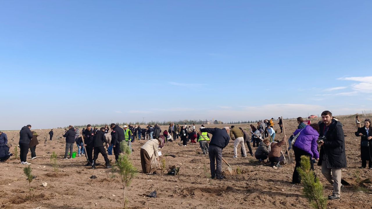 Öğrencilerden bürokratlara kadar birçok kişinin yer aldığı programda, 26 dönümlük araziye 5 bin fidan dikilerek projenin ilk adımı atıldı.