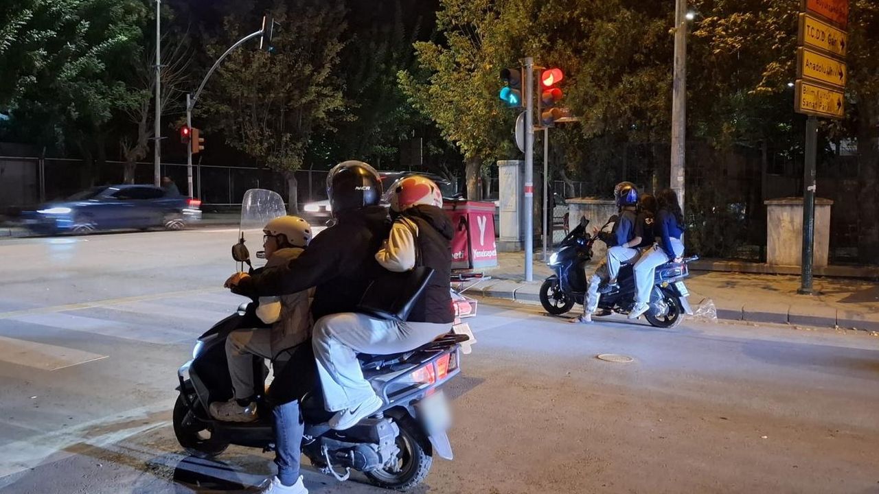 İstiklal Mahallesi’nde çekilen görüntüler, trafik güvenliğini hiçe sayan tehlikeli yolculuğu gözler önüne serdi. Şair Fuzuli Caddesi’nde iki motosiklete üçer kişi binen vatandaşlar, hem kendi canlarını hem de trafikteki diğer vatandaşları riske attı.