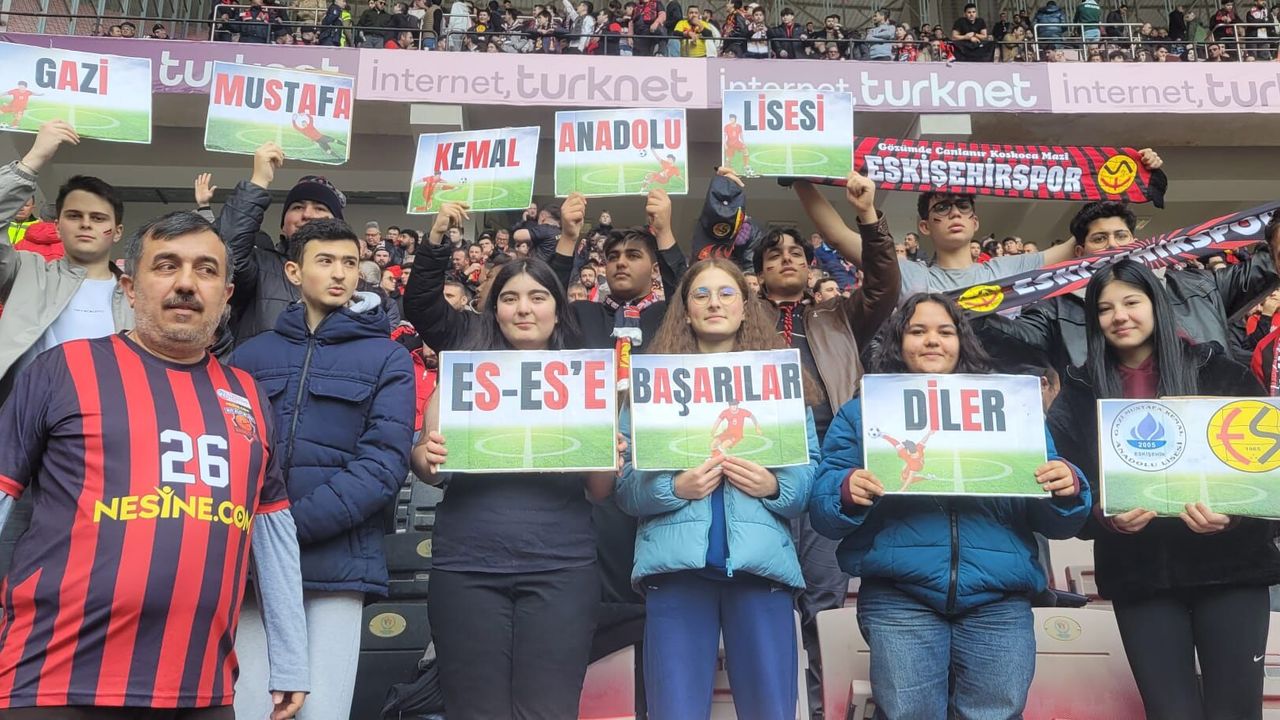 Prof. Dr. Fethi Heper Stadyumu’nda oynanan karşılaşmada pankartlarla tribündeki yerini alan öğrenciler, öğretmenleri ve Müdür Yardımcısı Mehmet Asar eşliğinde Eskişehirspor’a destek oldu. Maç atmosferinden ve alınan galibiyetten büyük mutluluk duyduklarını belirten öğrenciler, 2. Lig yolunda Eskişehirspor’a başarı dileklerini iletti.