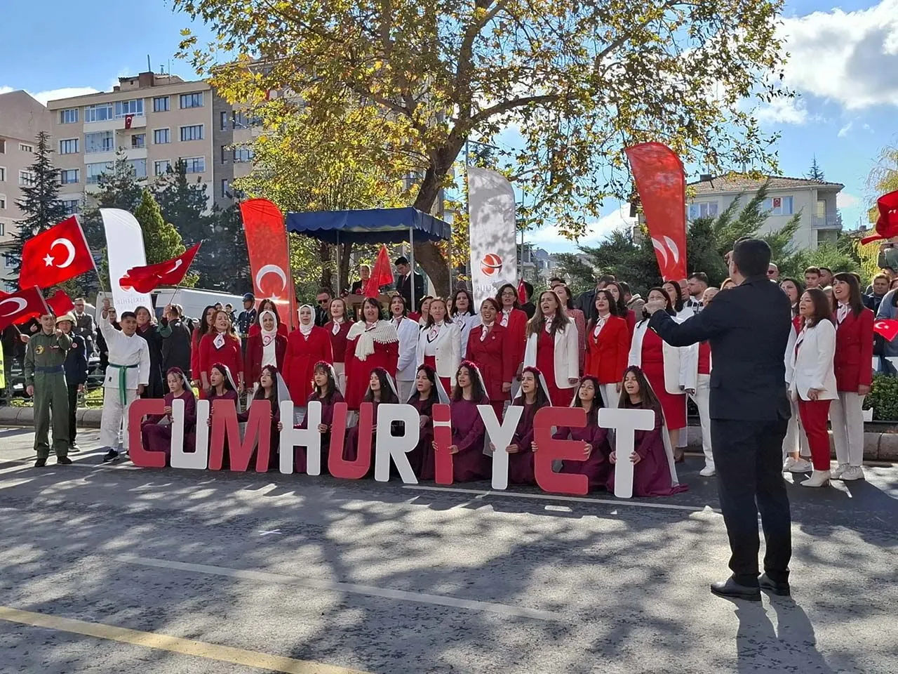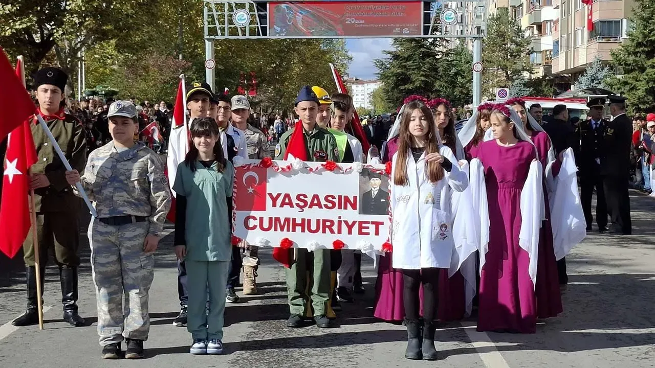 Ellerinde Türk bayraklarıyla alanı dolduran binlerce Eskişehirli, Cumhuriyet'in 102. yıl dönümünü marşlar ve coşkuyla kutladı.