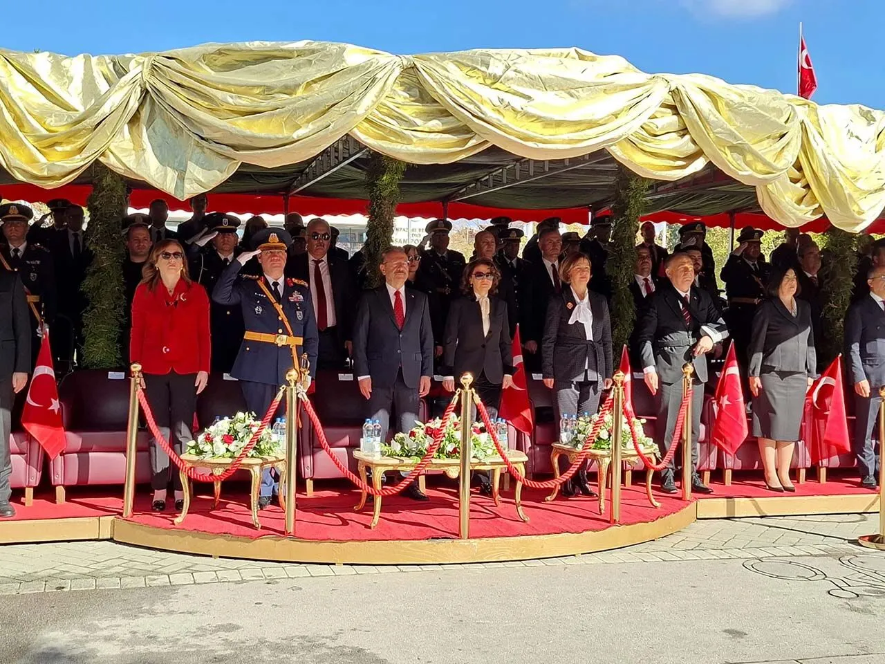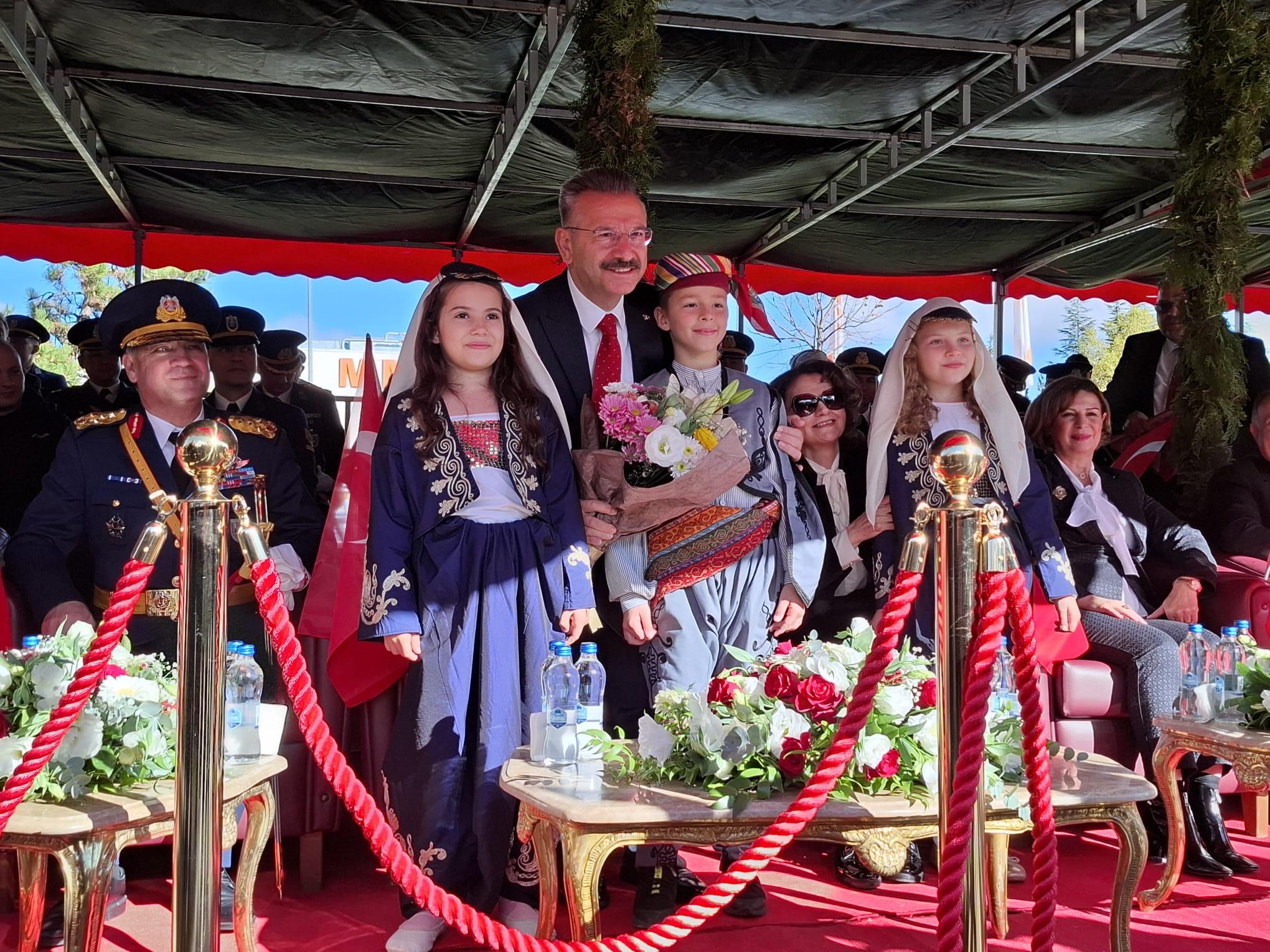 Törenin başında Eskişehir Valisi Hüseyin Aksoy ve Büyükşehir Belediye Başkanı Ayşe Ünlüce, tören alanındaki askeri birliklerin ve yoğun katılım gösteren vatandaşların bayramını tek tek kutladı.