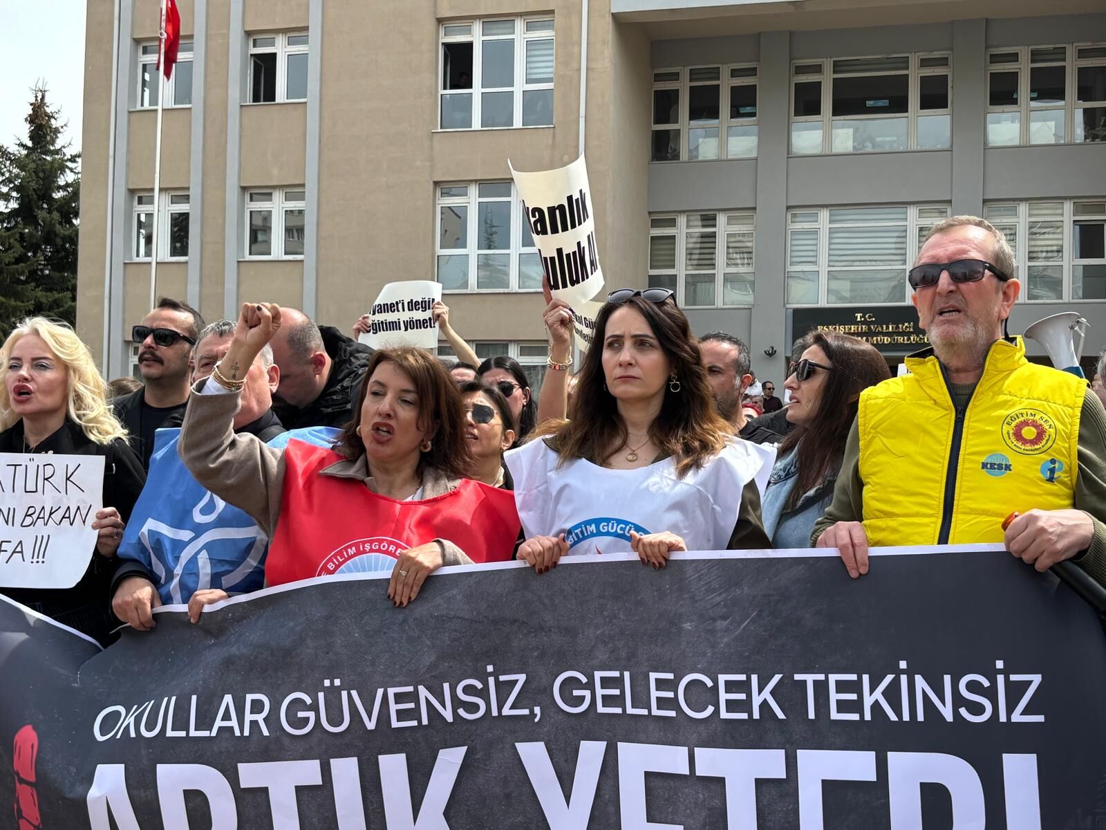 Binlerce öğretmen, " Okullarda ölmek istemiyoruz" sloganı attı.
