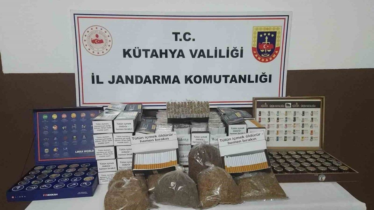 Kütahya İl Jandarma Komutanlığı unsurlarınca il genelinde kaçakçılık suçları kapsamında yapılan çalışmalar neticesinde, Pazarlar ilçe merkezinde bulunan bir iş yeri ve araçta yapılan aramada, 16 bin 440 adet içi doldurulmuş bandrolsüz makaron, 400 adet bandrolsüz makaron, 63 paket bandrolsüz nargile tütünü, 3 bin 750 gram kıyılmış bandrolsüz tütün ele geçirilmiştir.