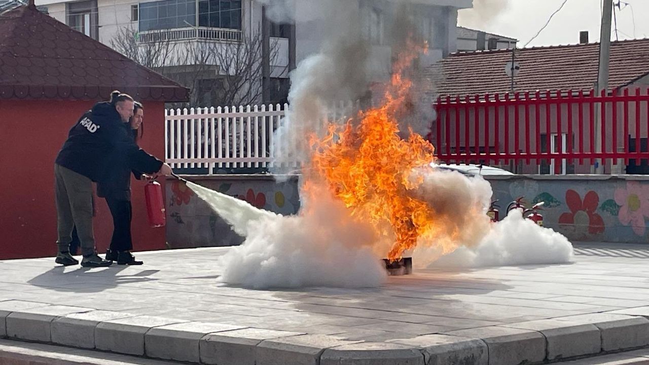 Tatbikat öncesinde öğrencilere deprem bilinci, afet anında doğru davranış şekilleri ve 'çök-kapan-tutun' hareketi hakkında bilgilendirme yapıldı.