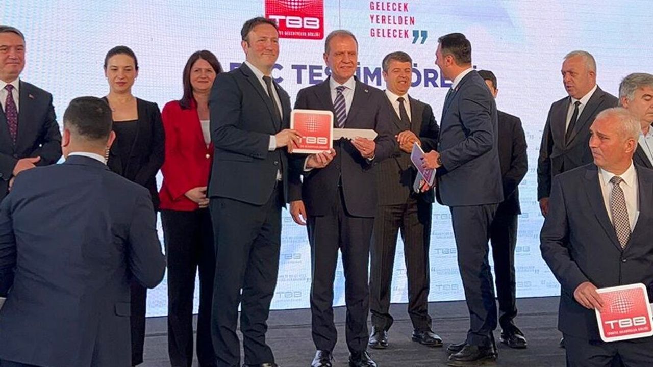 TBB’nin Nisan ayı encümen toplantısının ardından gerçekleştirilen törende, Türkiye genelinde 94 belediyeye toplam 95 adet hizmet aracı dağıtıldı. Tepebaşı Belediyesi’ni temsilen törene Başkan Yardımcısı Suat Yalnızoğlu katıldı. Hibe edilen iş makinasının temsili anahtarı, TBB Başkan Vekili ve Mersin Büyükşehir Belediye Başkanı Vahap Seçer tarafından Yalnızoğlu’na teslim edildi.